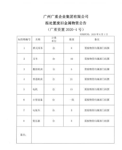 废旧设备处置(九游资置2020-4号)