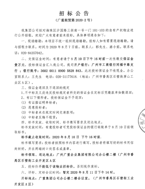沙园路三街南一号物业招租(九游租赁第2020-2号)