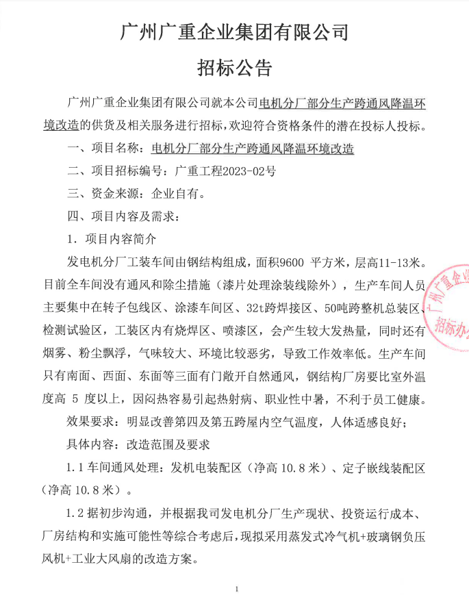 九游集团电机分厂部分生产跨通风降温环境改造工程项目招标公告